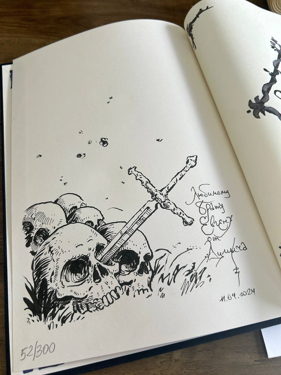 "the journey began a decade ago, fueled by my passion for illustration. Envisioning various characters, I embarked on creating a comic. The process was intermittent; I would abandon it only to feel drawn back repeatedly. Over time, the narrative expanded so significantly in my imagination that it transformed into a comprehensive book, narrated in a leisurely, fairy-tale manner. The pages are a canvas where monochrome illustrations blend with bursts of color. Each section commences with an ornate initial letter, complemented by an elegant flyleaf. Remarkably, the cover bears no trace of publishing details, price, or even my name. It stands as a clandestine tome, or perhaps more aptly, a mystical artifact, rooted in the essence of dark fairy tales. It eschews a central storyline, yet culminates on an uplifting note, imparting lessons on the pursuit and discovery of happiness"